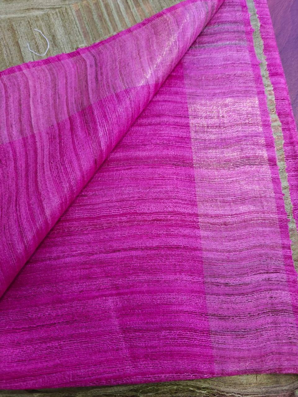 Ghicha or Gicha is a silk yarn obtain from the cocoon filaments. The by-product of Tussar silk is usually Ghicha silk. The Ghicha silk threads are natural and give a natural texture and an outstanding sensational weaving. The silk fabric in Ghicha is rough but surprisingly soft to the touch and yet the lustrous silk.Ghicha silk sarees are made by hand-spinning the silk yarn, dyeing it with natural dyes, and weaving it on a traditional handloom.