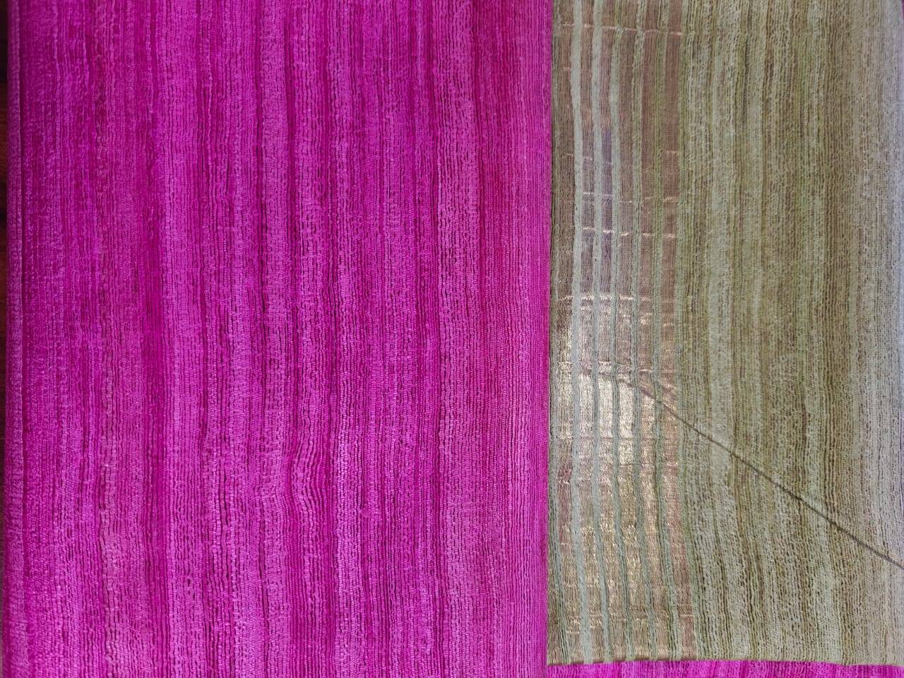 Fuchsia and sea Green Gichcha sari with Zari Border.