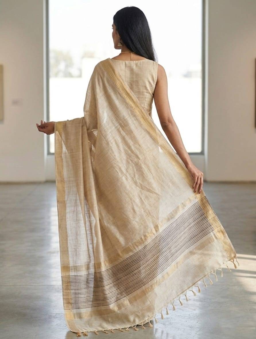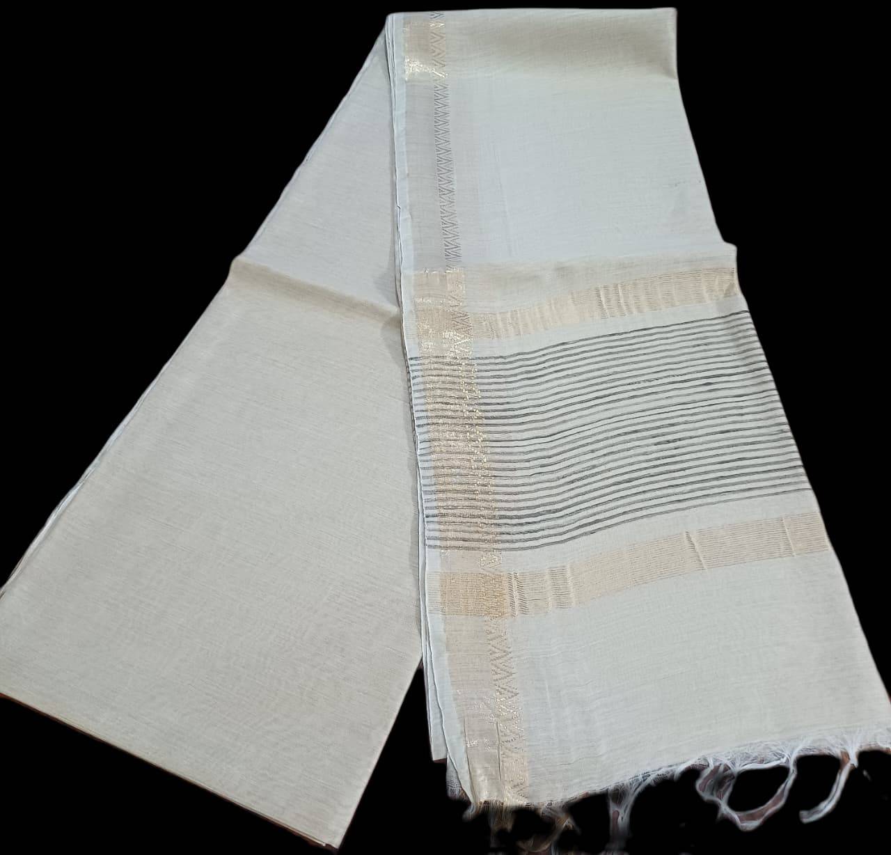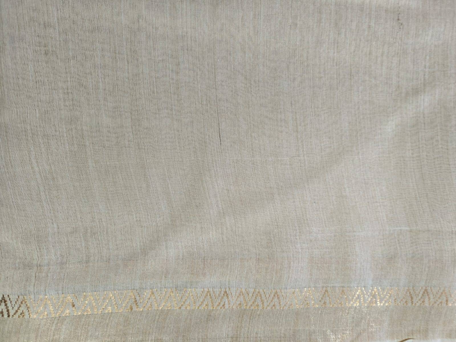 Natural colour Munga Sari with Zari Border.