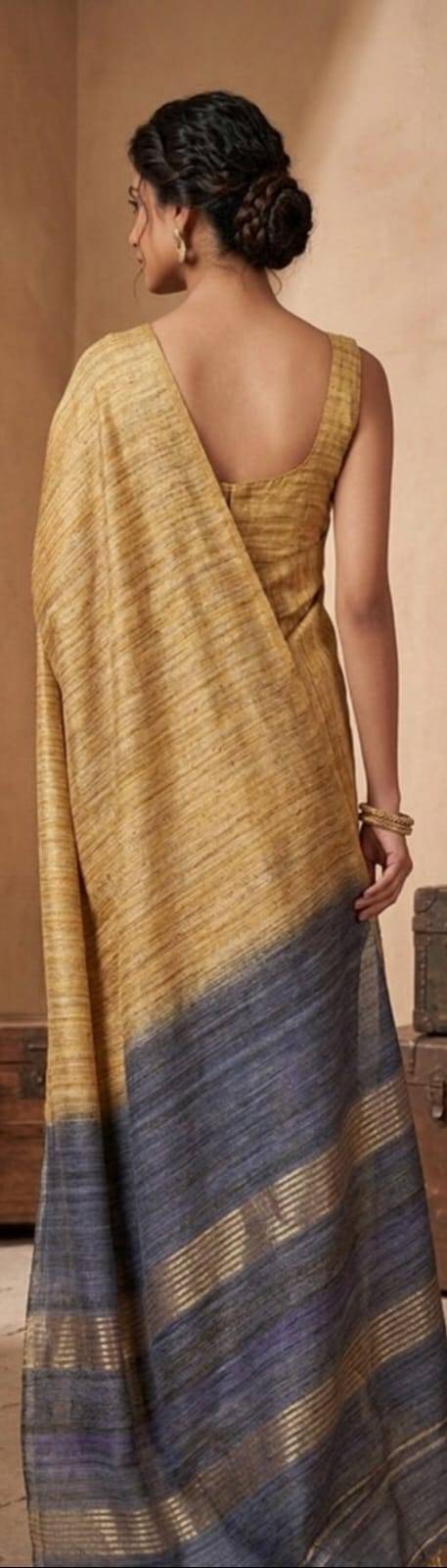 Ghicha or Gicha is a silk yarn obtain from the cocoon filaments. The by-product of Tussar silk is usually Ghicha silk. The Ghicha silk threads are natural and give a natural texture and an outstanding sensational weaving. The silk fabric in Ghicha is rough but surprisingly soft to the touch and yet the lustrous silk.Ghicha silk sarees are made by hand-spinning the silk yarn, dyeing it with natural dyes, and weaving it on a traditional handloom. The hand-weaving process can result in slight irregularities in the weave. Ghicha silk should be dry-cleaned for the first wash. After that, it can be water polished or soft polished.