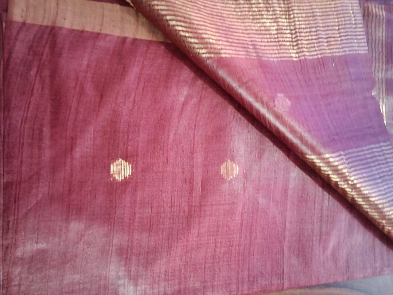 Rose pink Tussar Silk Sari with Buta.