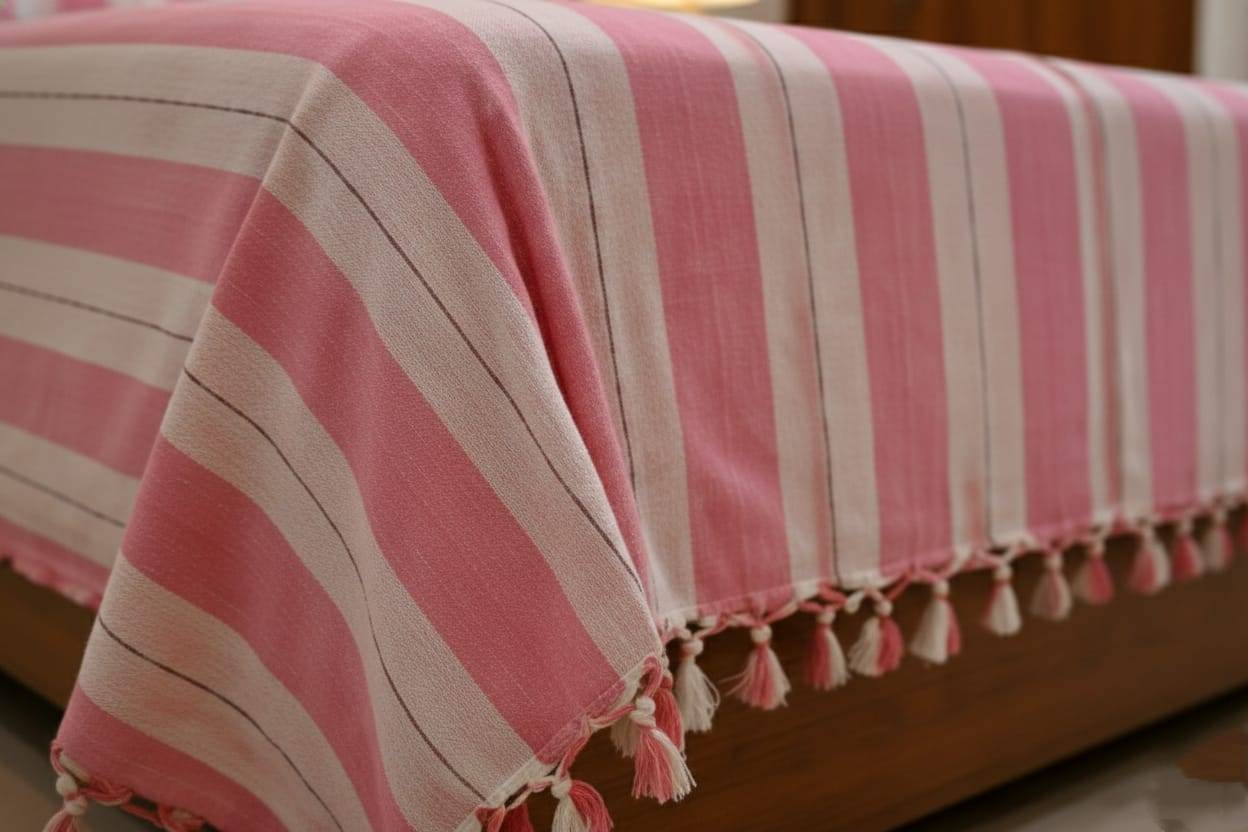 Bhagalpuri Chaddar in Dark Pink and White Stripes