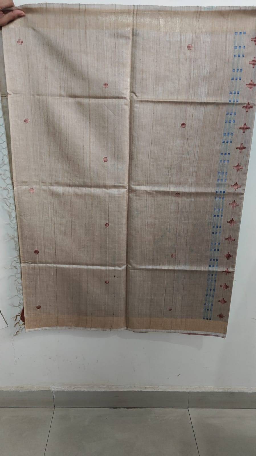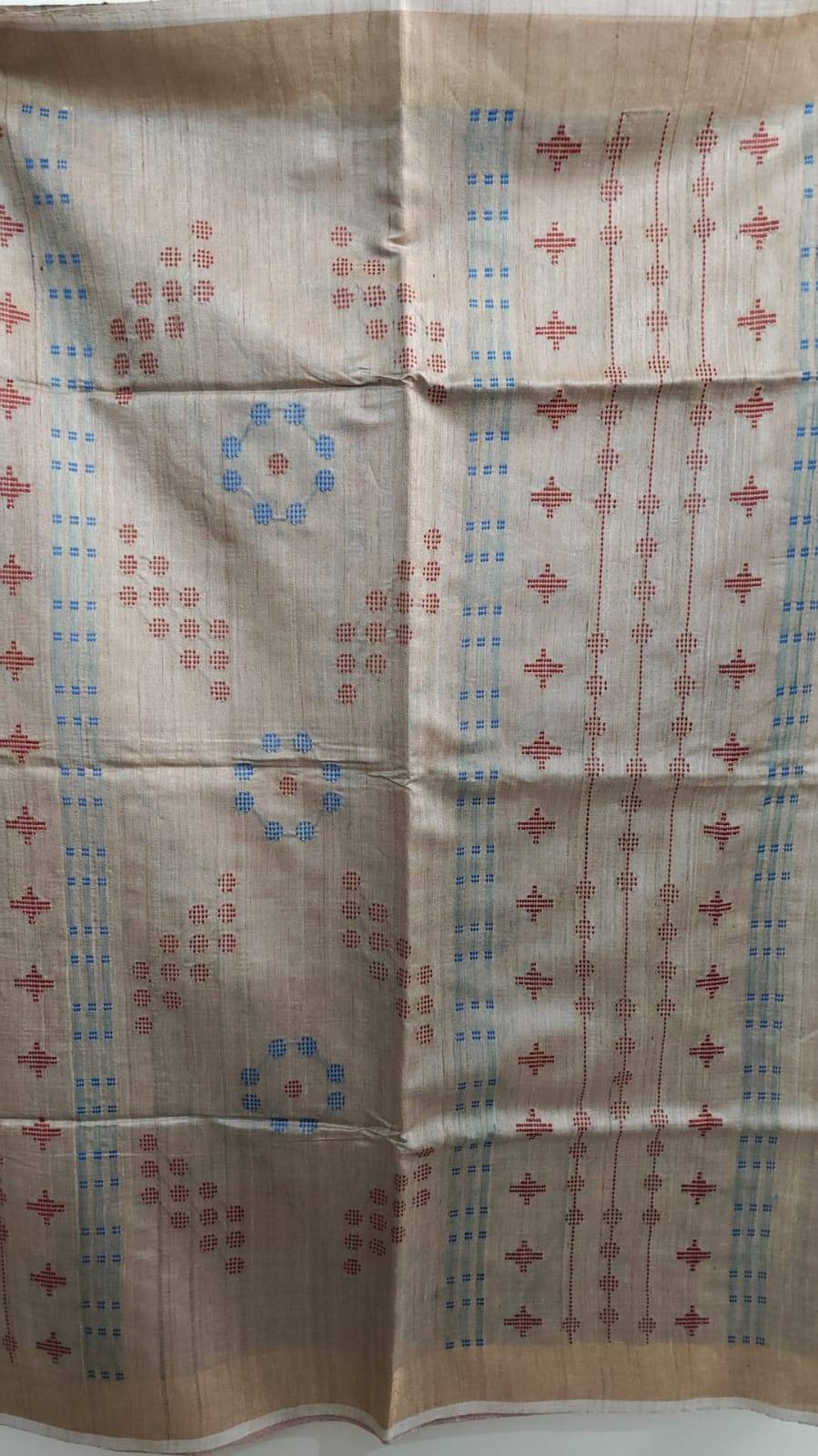 Tussar silk saree with gold border in Bawan Booti weave