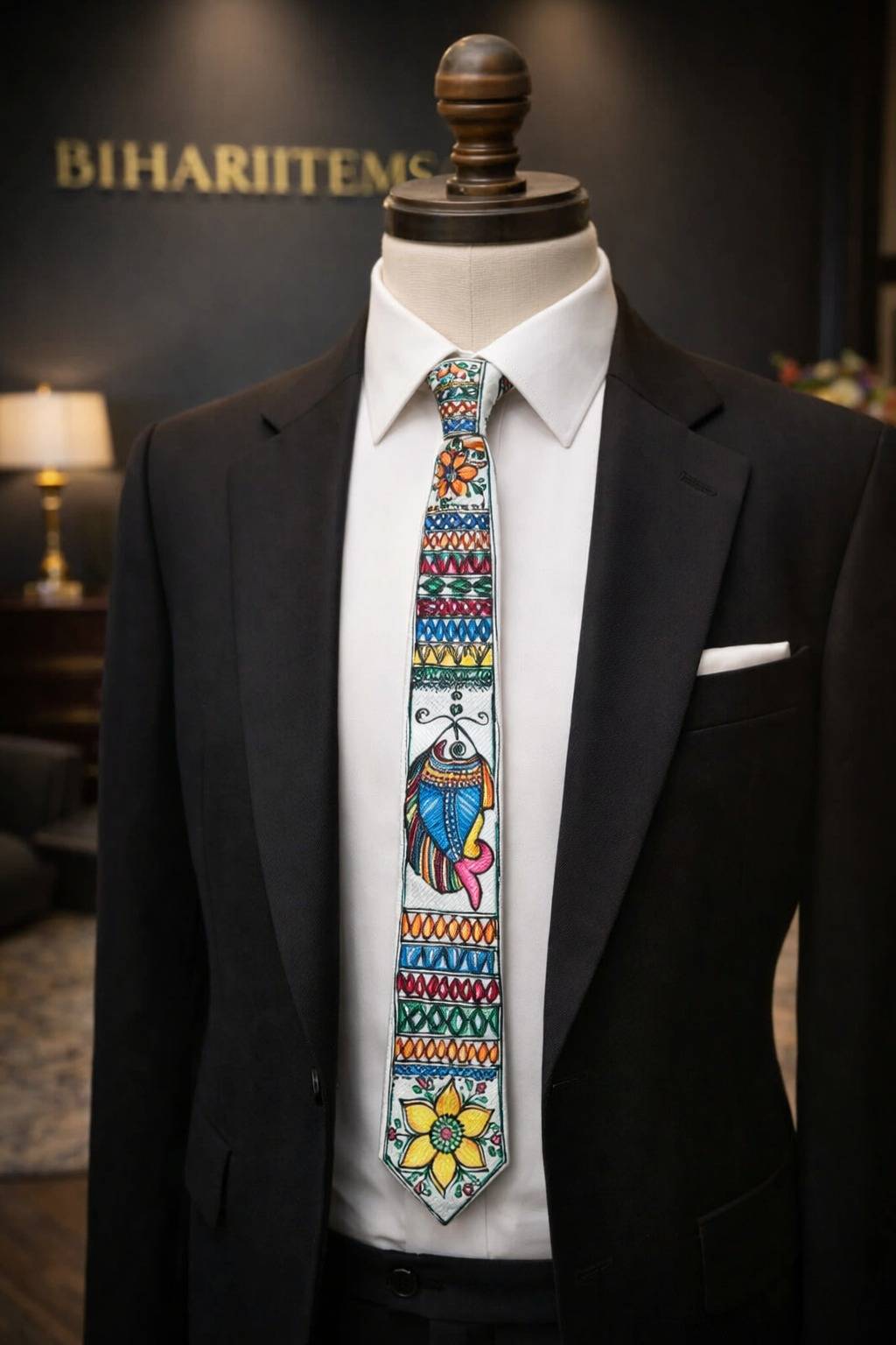 Ties are a timeless essential in men’s fashion—where refinement meets self-expression. At bihariitems.com, we present a thoughtfully curated collection of tussar silk ties, each hand-painted in the rich folk art traditions of Manjusha and Madhubani. These ties are more than accessories; they are wearable art pieces that celebrate heritage, craftsmanship, and individuality. With distinctive motifs and meticulous detailing, every design makes a bold yet sophisticated style statement, perfect for the modern man who values originality and cultural elegance.