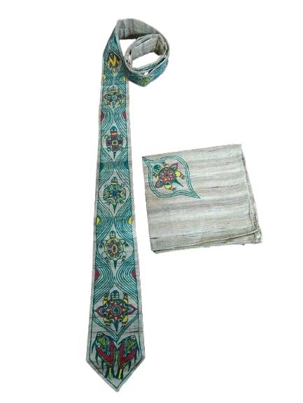 Ties with pocket Square are a timeless essential in men’s fashion—where refinement meets self-expression. At bihariitems.com, we present a thoughtfully curated collection of tussar silk ties, each hand-painted in the rich folk art traditions of Manjusha and Madhubani. These ties are more than accessories; they are wearable art pieces that celebrate heritage, craftsmanship, and individuality. With distinctive motifs and meticulous detailing, every design makes a bold yet sophisticated style statement, perfect for the modern man who values originality and cultural elegance.