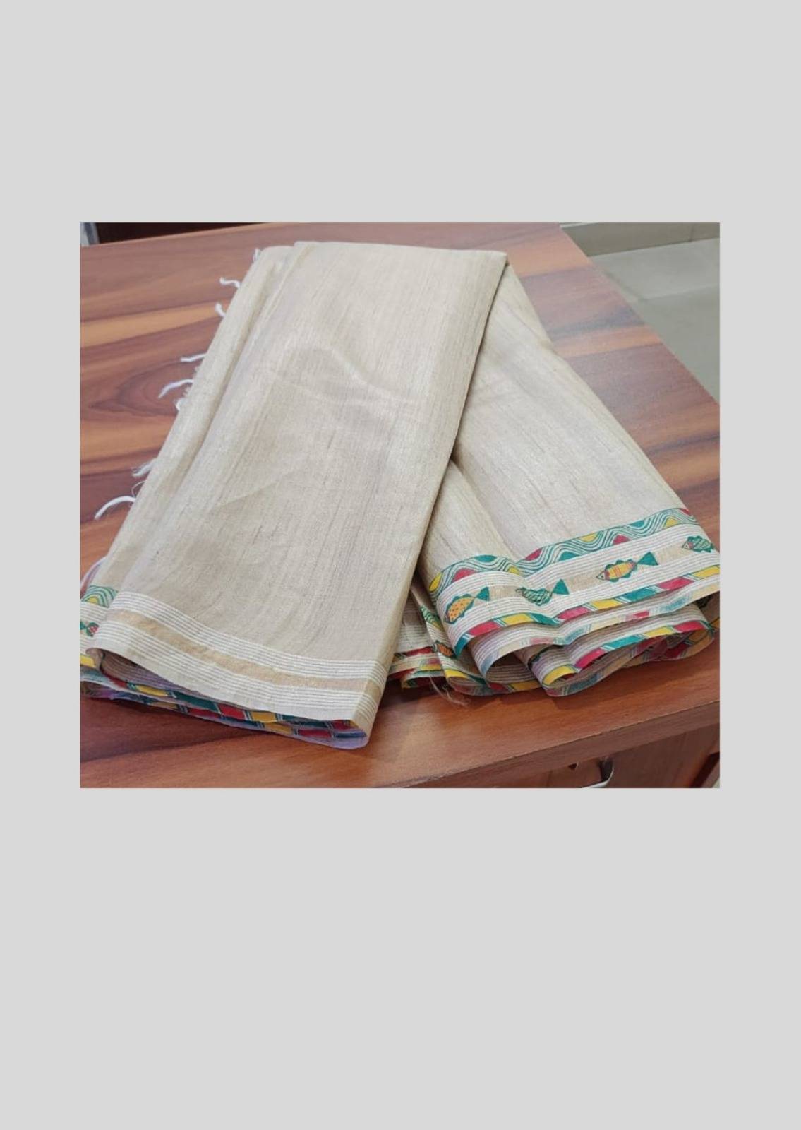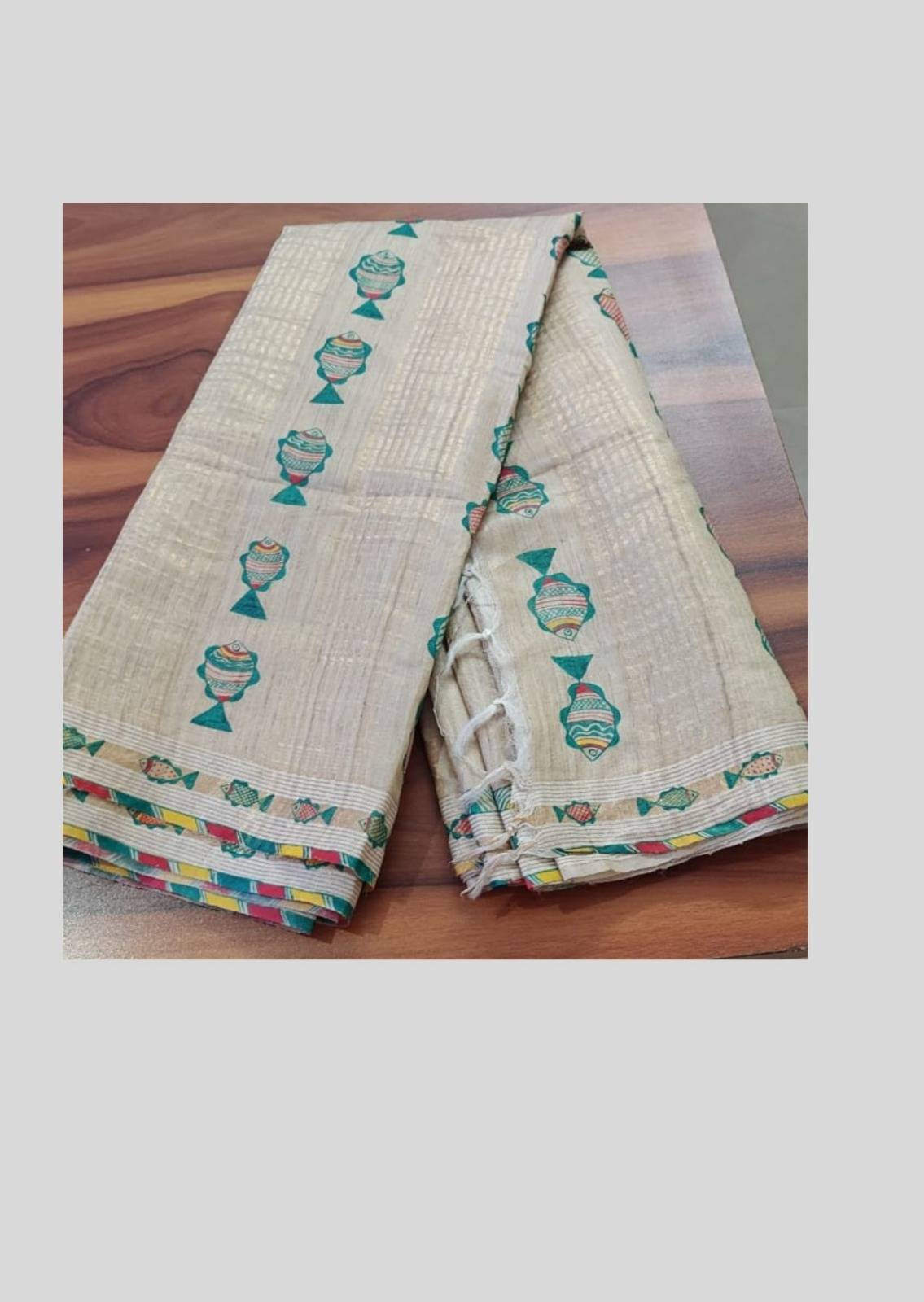 Bhagalpuri Munga Saree in Natural Tones with Hand-painted Manjusha Art